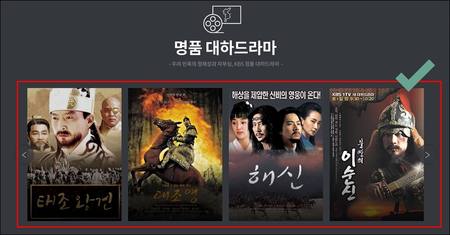 과거에 인기 있었던 명품 대하드라마를 처음부터 끝까지 감상할 수 있어요.