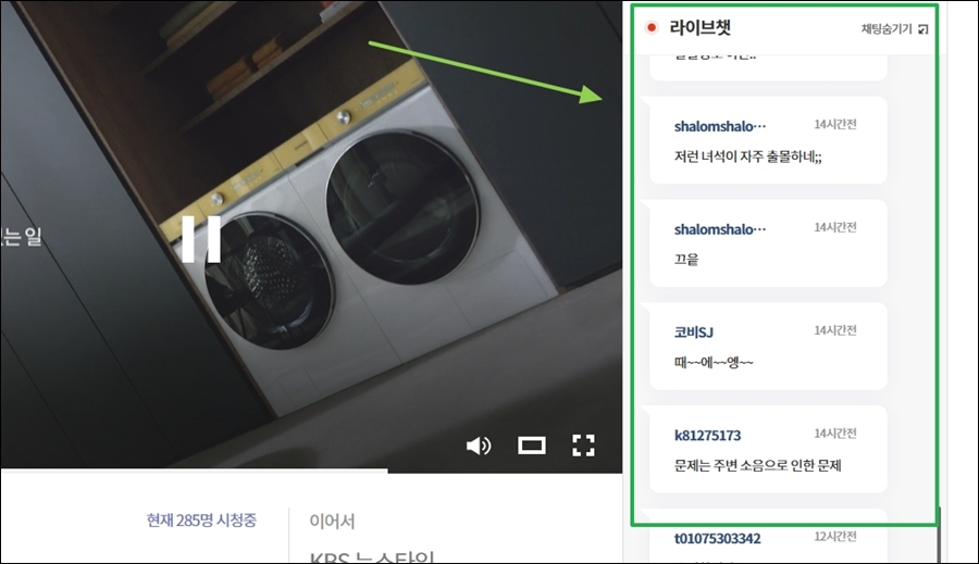 라이브챗은 같은 kbs2 프로그램을 실시간으로 시청하고 있는 사람들끼리 대화를 나눌 수 있게 해주는 서비스에요.