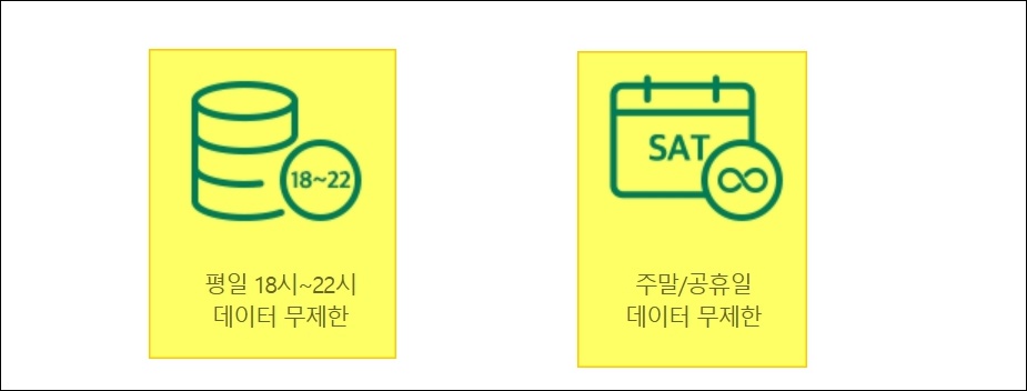 해당 요금제의 경우 군 생활에 최적화 되어 있다고 생각합니다. 보통 군대에서는 오후 6시까지 훈련이나 맡은 업무를 마치게 됩니다. 그 이후부터는 대체로 휴식을 하죠. 이럴 때에 스마트폰을 많이 이용하게 되는데요. 해당 요금제 사용시 데이터 걱정 없이 스마트폰으로 인터넷을 쓸 수 있습니다. 주말과 공휴일에도 무제한이고요.