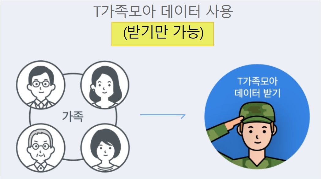 가족 중에 SKT를 사용하고 있는 사람이 있다면 T가족모아 데이터 사용도 가능합니다. 줄 수는 없고 받기만 가능합니다.