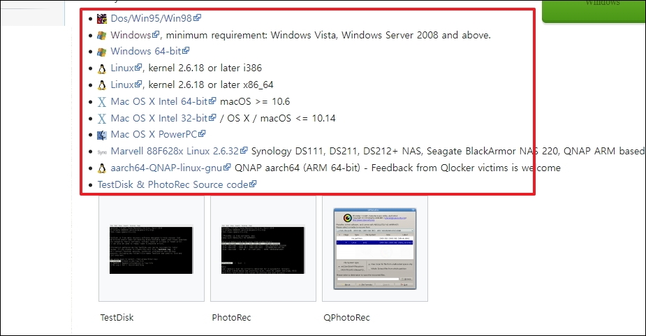 해당 프로그램은 도스, 윈도우95, 윈도우98, 리눅스, 맥북, 윈도우 64 운영체제 등에서 실행이 가능합니다. 이렇게 다양한 운영체제에서 사용할 수 있는 파일 복구 프로그램도 흔치 않을 겁니다.