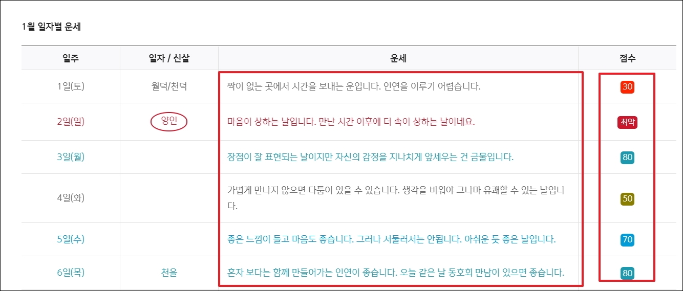 ▼데이트를 하게 되면 어떤 날이 좋을지 고민이 될 때가 있습니다. 이런 경우에는 일자별 운세를 참고하면 됩니다.