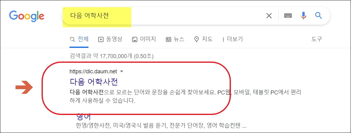 ▼첫 번째로 사용할 서비스는 간단한 한자, 관련 단어, 고사성서에 대하여 알아볼 때 유용합니다. 요즘에는 그려서 찾는 기능을 사용하기 때문에 3초 만에 원하는 정보를 얻을 수 있습니다. 옥편보다 훨씬 빠르고, 방대한 자료를 제공하고 있죠. 다음 어학사전 사이트에 접속해서 해당 서비스를 사용해 보겠습니다.