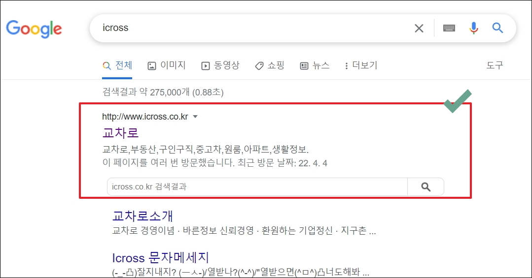 ▼가장 먼저 해야 할 것은 교차로 신문 공식 홈페이지에 접속해야 합니다. 인터넷 주소를 보면 icross로 되어 있는 것을 알 수 있습니다. 인터넷 브라우저 주소창에 해당 주소를 입력하면 빠르게 접속이 가능합니다.