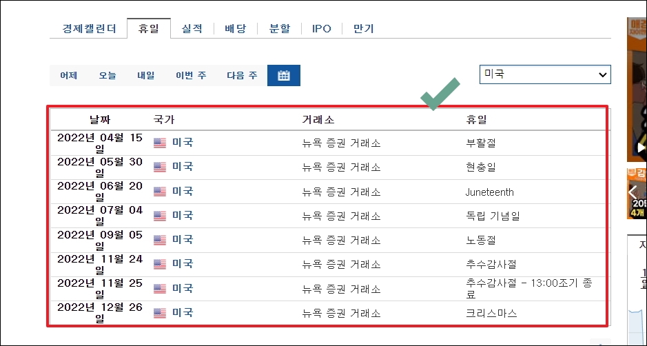 오늘 미국증시 휴장 확인하기 (2022년 휴장일 포함)