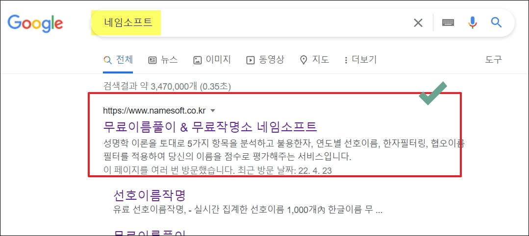 ▼네임소프트 사이트에서는 인기 있는 이름 순위를 확인하는 것은 물론이고, 성명학에 근거한 아기 이름 짓기를 할 수 있습니다. 이곳에서는 무료 작명 서비스를 제공하고 있는데, 이정도만 사용해도 충분합니다.