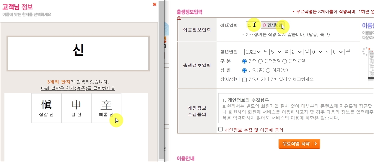 인터넷으로 쉽게 아기 이름 짓기.