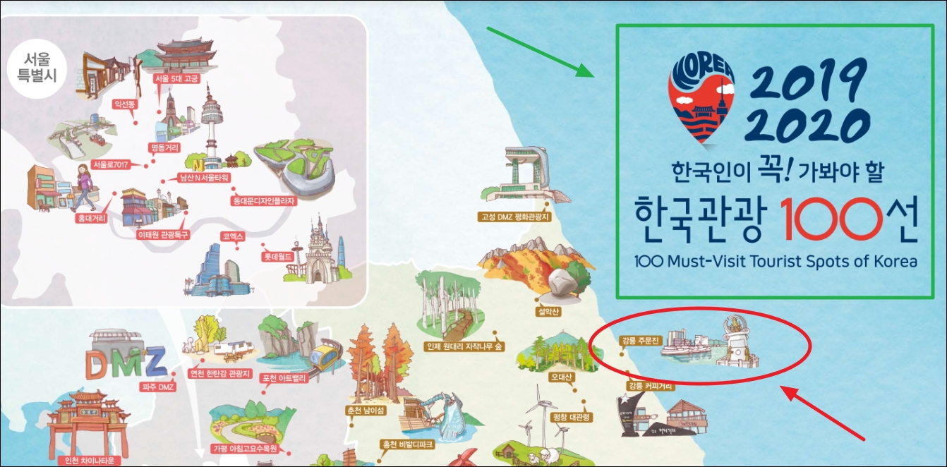 ▼한국인이 꼭 가봐야 할 한국관광지 100선을 안내하는 여행지도 파일을 다운 받았습니다. 파일을 열어보면 서울부터 부산, 제주, 강릉, 경주, 전주 등 전국 모든 지역에 대한 여행 정보를 살펴볼 수 있습니다. 가보고 싶거나 관심이 있는 곳이 있다면 여행지도에 나온 이름을 기억해 주세요.