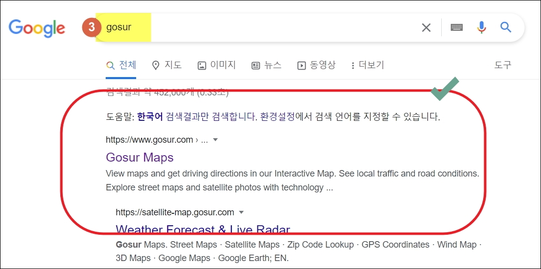 ▼마지막으로 Gosur Maps 사이트입니다. 이곳의 경우 해외 사이트이기 때문에 소개 글이 영문으로 되어 있습니다. 하지만 한글화 기능이 있기 때문에 무리 없이 위성지도 보기 가능합니다.