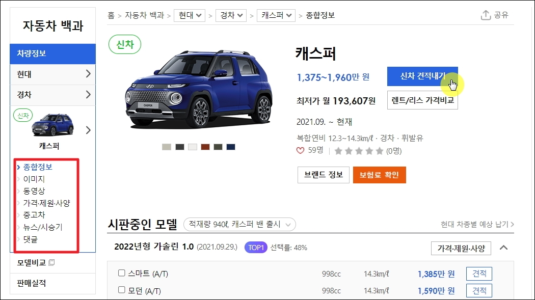 자동차 가격비교 사이트 제대로 활용하기 (제원, 사양, 견적, 유지비)