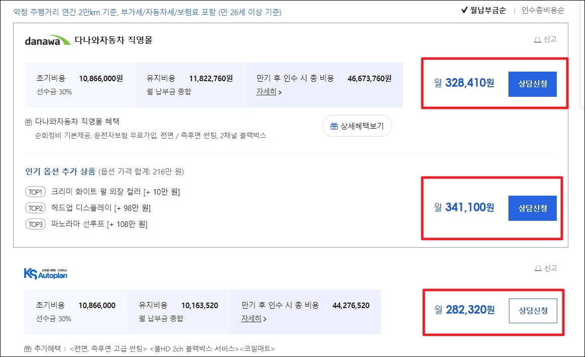 온라인으로 장기렌트 가격 비교 및 이용하기.
