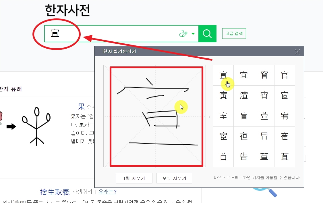 온라인으로 한글로 한자찾기 따라하기.