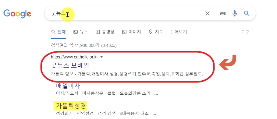 ▼인터넷으로 가톨릭 성경읽기 가능한 사이트를 이용해 보겠습니다. 천주교 관련 사이트로 꽤 유명한 곳인 굿뉴스 입니다. 이곳의 경우 다양한 가톨릭 관련 서비스를 만나볼 수 있습니다.