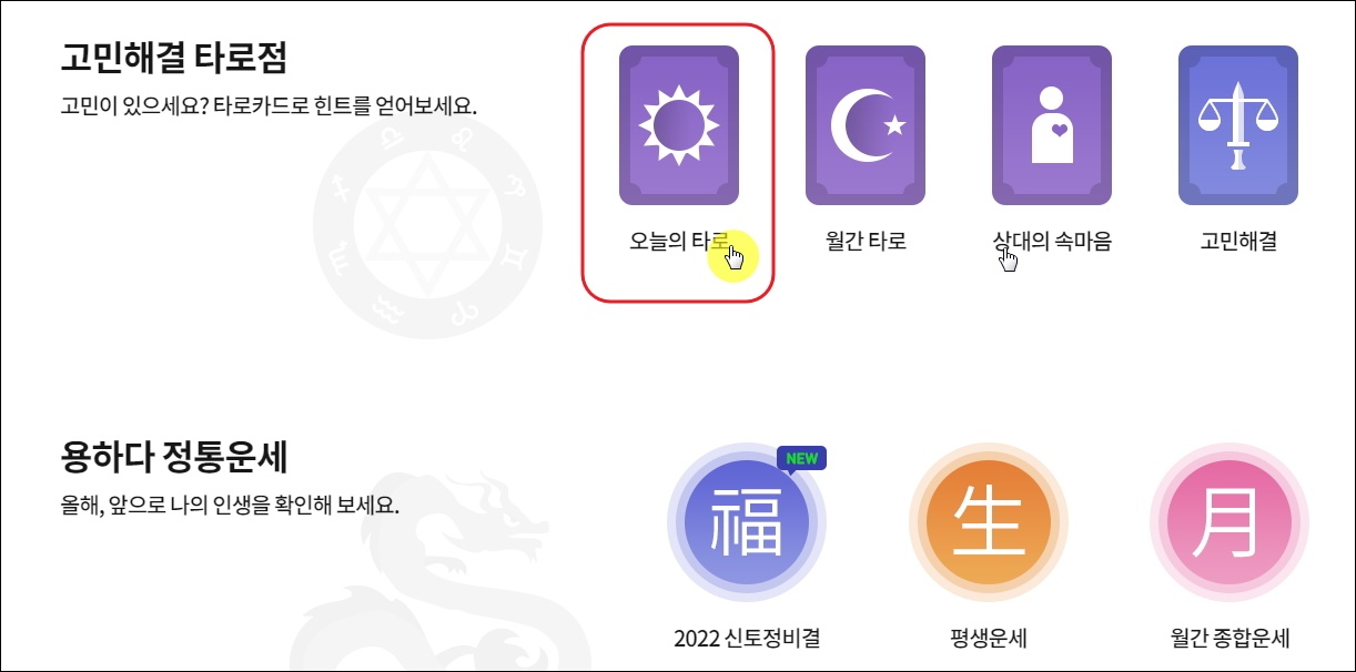 오늘의 타로운세 이용하기 (무료 서비스)