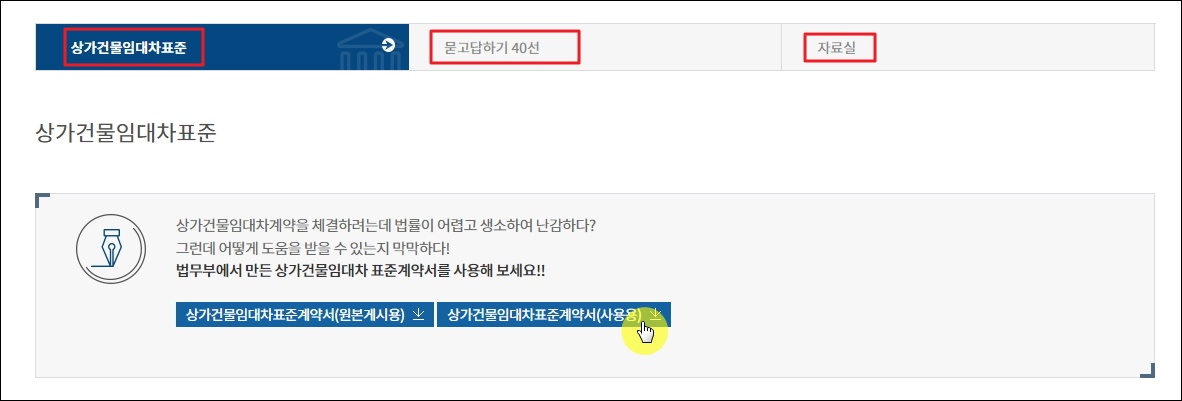 법무부 사이트에서 제공하는 사무실 임대차 계약서 양식 이용하기.