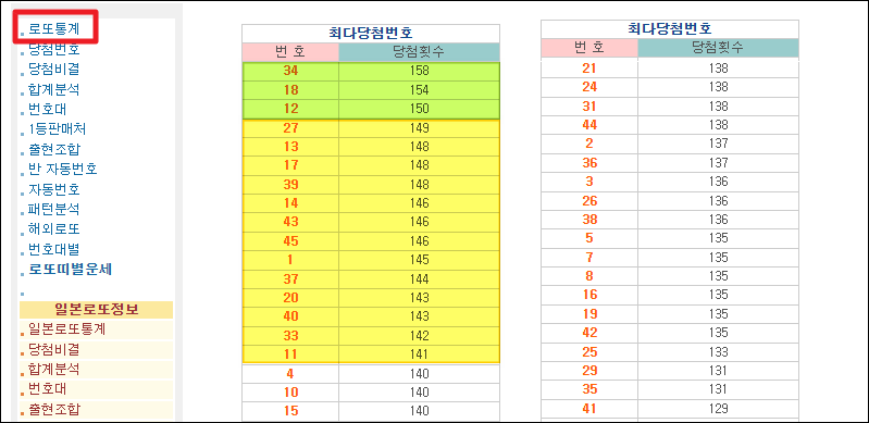 통계로 보는 로또번호 가장 많이 나온 숫자 확인하기.