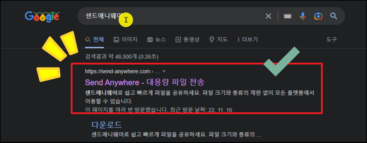 샌드애니웨어 사이트에 접속했습니다. 별다른 프로그램을 설치하지 않아도 해당 사이트를 통해 사진이나 동영상 등의 파일을 보내거나 받을 수 있어요.