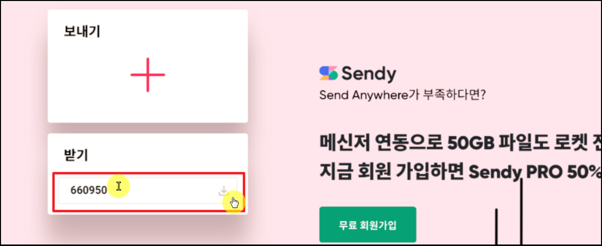 그럼 사이트의 첫 페이지에 나타나 있는 받기 영역에 6자리 숫자키를 입력해 보겠습니다. 이전 단계에서 아이폰 화면에 나타난 6자리 숫자키를 입력하면 됩니다.