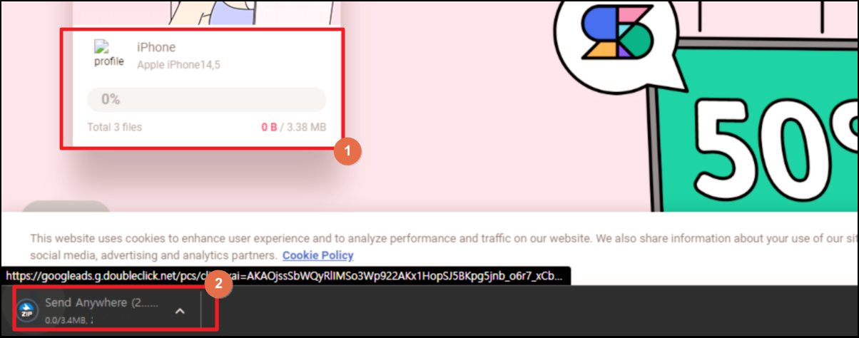 이번에는 아이폰에서 전송하는 사진을 받을 기기에서 진행해야 하는 부분입니다. "샌드애니웨어" 사이트에 접속하여 6자리숫자 코드를 입력하기만 하면 돼요.