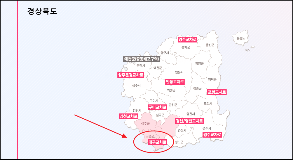 경상북도 지역의 이미지가 나타났습니다. 여기에서 "대구 교차로"를 선택해 주세요.