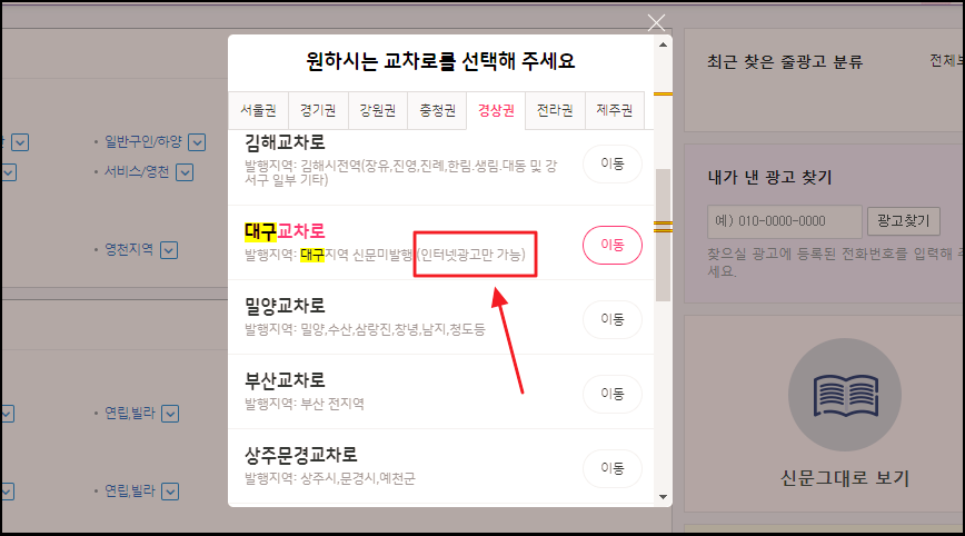 참고로 다른 지역에 대한 정보도 많은데요. 서울, 경기, 강원, 충남, 충북, 전북, 전남, 제주, 해외 교차로 신문에 대한 그대로보기 서비스 이용이 가능합니다.