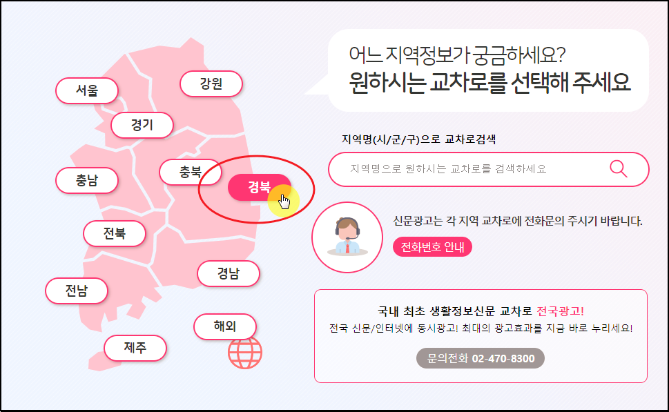 새롭게 열린 페이지에서는 종이신문처럼 아니라 인터넷 화면 방식으로 해당 지역의 정보를 보여줍니다.
