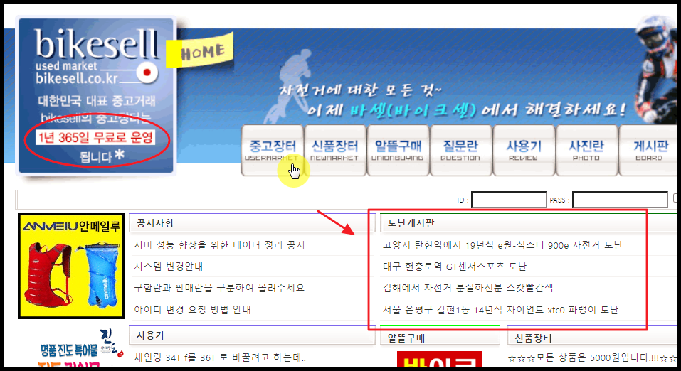 참고로 이곳에서는 도난 게시판도 운영하고 있는데요. 기존에 사용하던 자전거가 도난이 된 경우 이 게시판에 한 번 글을 남겨보세요.