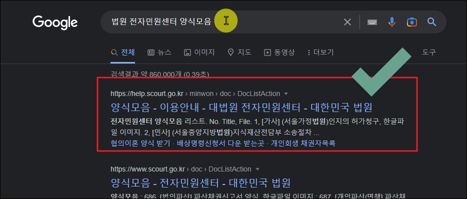 ▲ 혹시라도 법이 개정되거나 그러면 개명허가 신청서 양식이 달라질 수 있는데요. 이럴 때를 대비해서 최신으로 양식을 얻는 방법도 알려드리겠습니다. 법원 전자민원센터 양식모음 사이트에서 다운 받으면 됩니다.