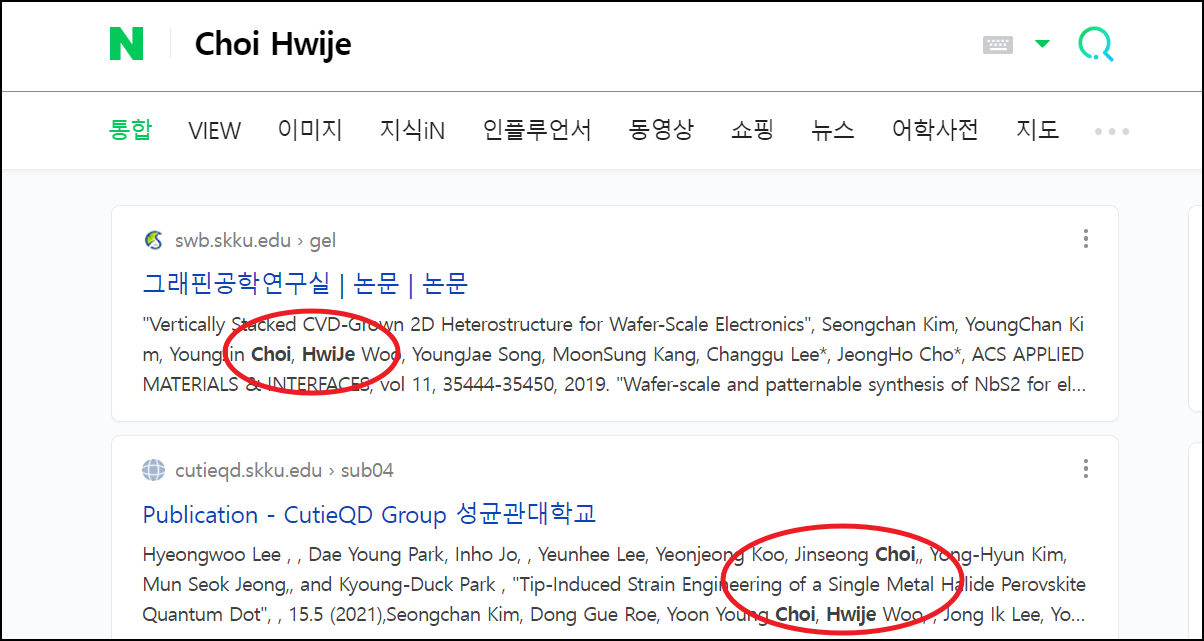 마우스로 가장 높은 사용빈도의 영문변환 표기를 선택해 보았어요. 다음과 같이 인터넷 상에서 해당 표기를 사용한 경우를 살펴볼 수 있어요. 참고로 이러한 예시를 볼 때 유명인이 사용하는 표기를 주의 깊게 보는 것이 좋습니다. 왜냐하면 유명한 사람들의 경우 해외 활동을 하는 경우가 많다보니 자신의 한글이름에 대한 영문 표기에 신경을 더 많이 쓰는 경향이 있기 때문입니다.