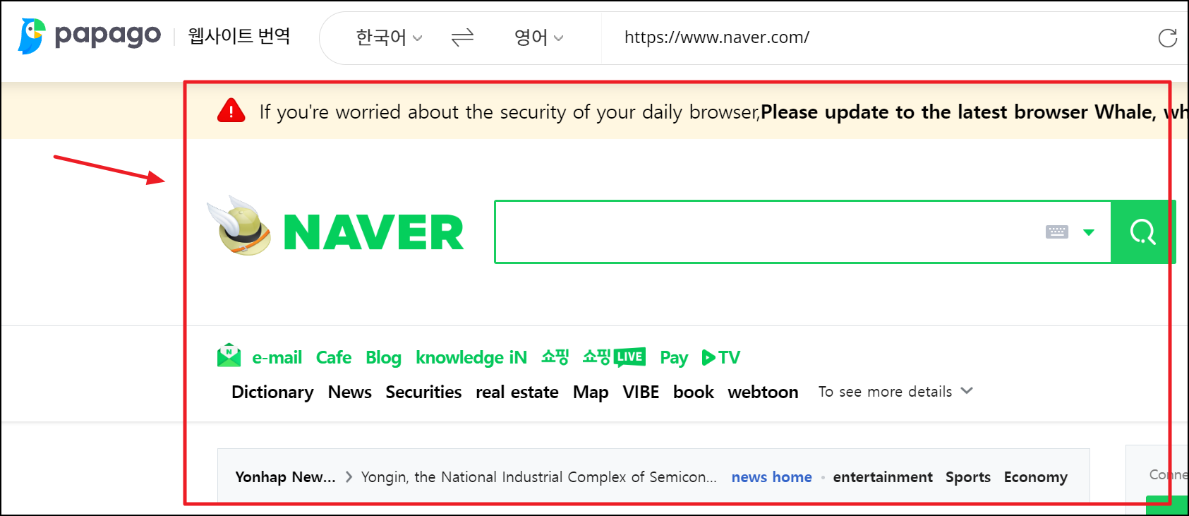 저는 네이버 사이트를 영어로 바꾸어 보았어요. 영어로 잘 나오고 있네요. 국내에 거주하거나 여행을 하고 있는 영미권의 외국인들에게 도움이 될 것 같아요. 주변에 외국인 친구들이 있다면 프로그램을 알려주고 싶네요.