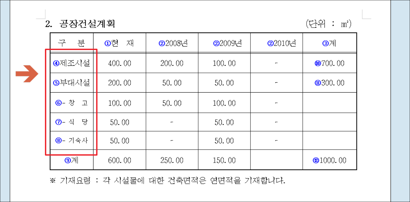 추가로 공장을 건설할 계획을 가지고 있는 경우 투자나 지원을 받는 데에 있어서 긍정적인 효과를 줄 수 있습니다. 공장건설계획 내용을 적을 수 있는 표도 양식에 포함되어 있습니다.