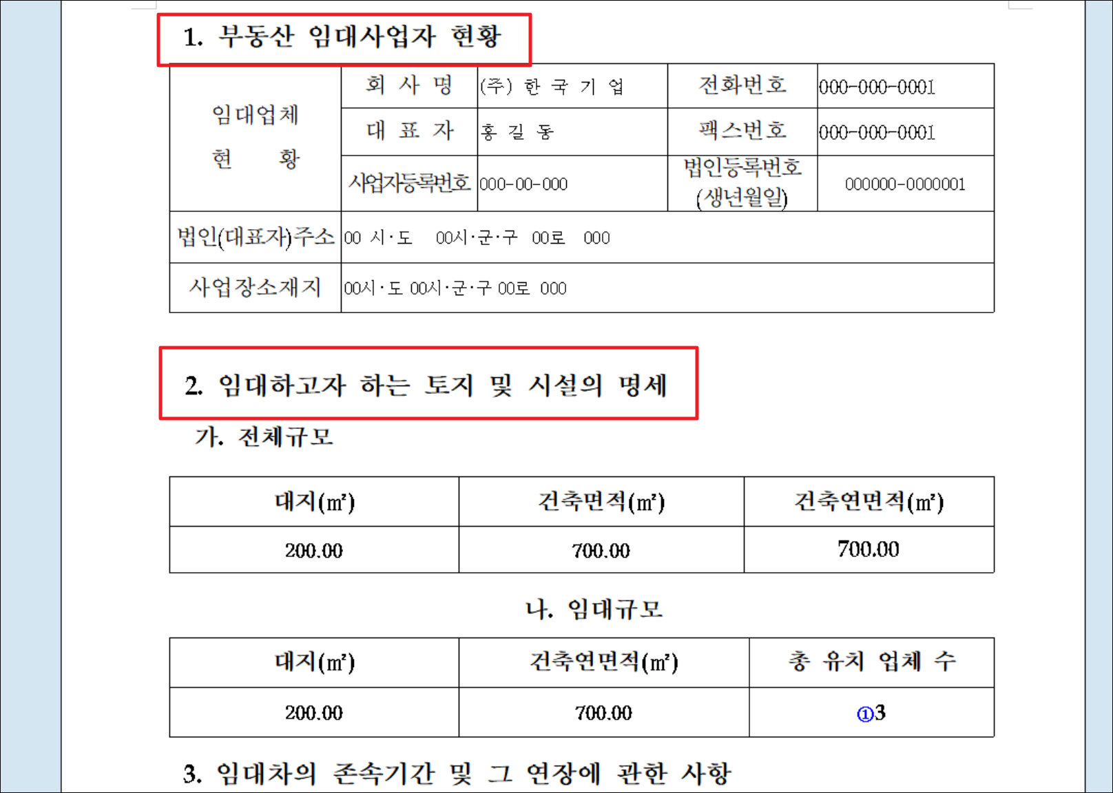 여러 상가나 주택을 보유하고, 이를 통해 임대 수익을 얻는 경우에도 사업계획서가 필요한데요. 이러한 경우에도 임대업체 현황, 대표자 또는 법인 주소, 사업장 소재지, 임대하고자 하는 토지 및 시설의 명세 부분을 기재하면 됩니다.