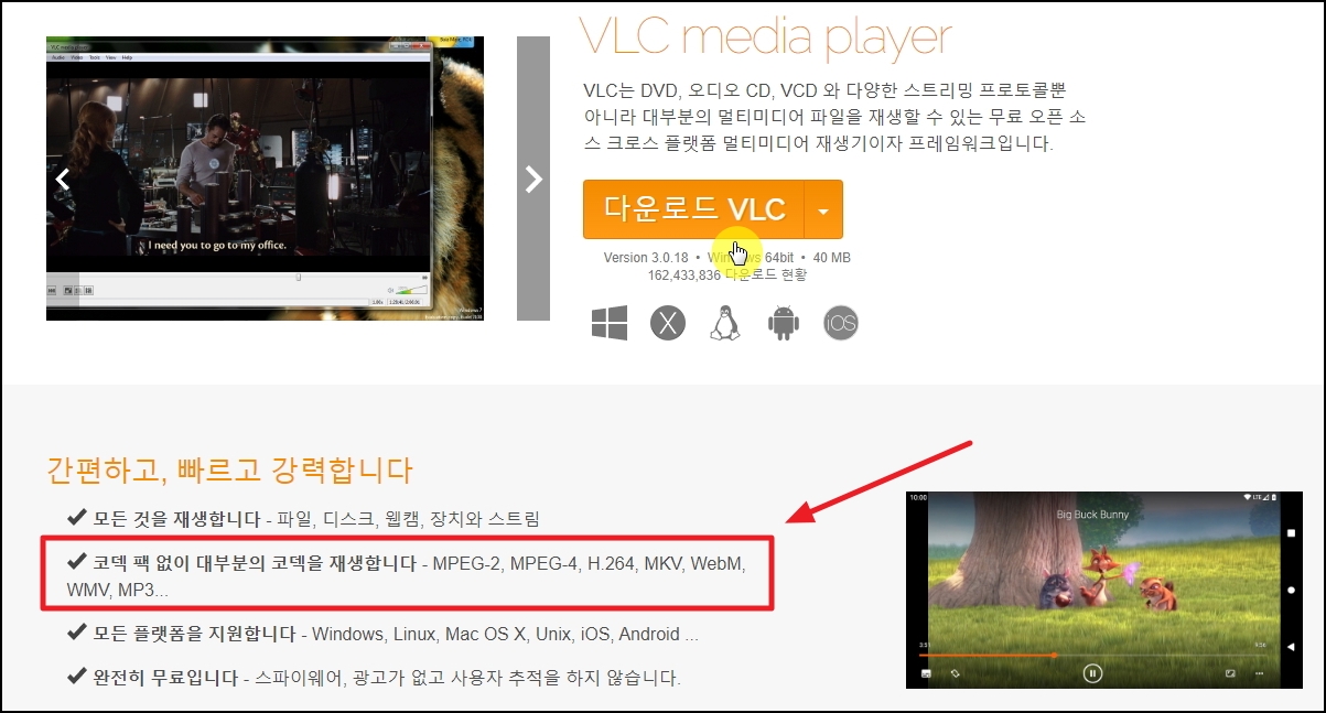 저는 몇 년 전부터 VLC 미디어 플레이러를 사용하는데요. 동영상은 물론이고, 오디오 재생도 VLC를 이용하고 있습니다. 스파이웨어나 광고도 없는 점도 좋지만, 성능 또한 뛰어나다는 점에 있어서 만족도가 높습니다.