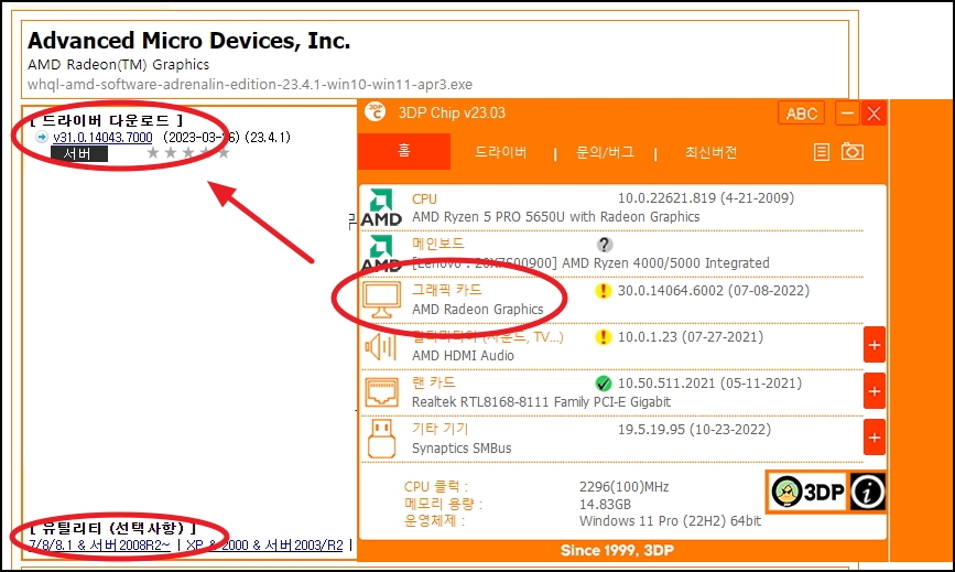 3dp chip 사용법은 간단한데요. 동영상이 안되는 경우에는 프로그램 화면에서 3번째 위치한 그래픽 카드의 이름을 마우스로 클릭합니다. 그럼 웹페이지가 하나 열리는데요. 여기에서 그래픽 카드에 맞는 드라이버를 다운로드 받아 설치하면 됩니다. 관련 유틸리티도 제공하고 있으니 필요한 분들은 함께 이용해 보세요.