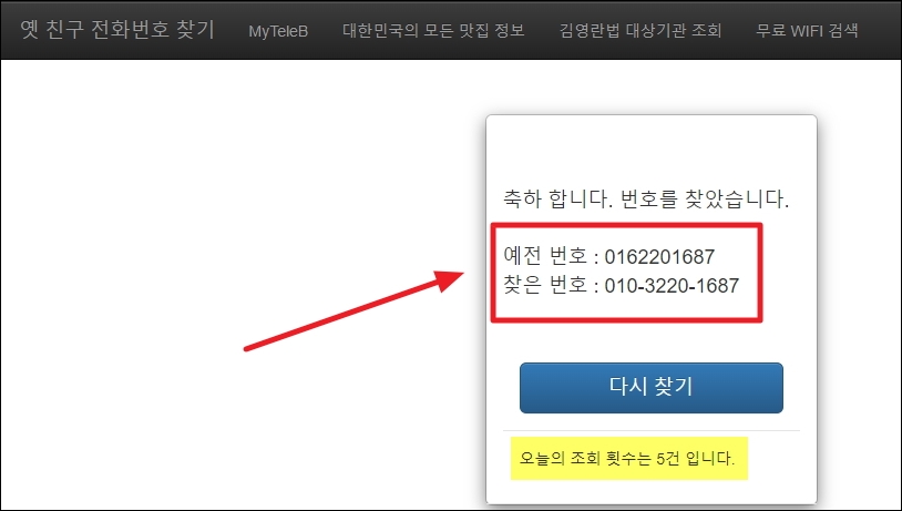 번호 찾기에 걸리는 시간은 1초도 걸리지 않는데요. 예전 번호와 이번에 찾은 것이 어떻게 달라졌는지 확인해 보세요. 그리고 옛 친구과 통화도 한 번 해보세요. 그 친구가 연락처를 다른 것으로 바꾼 것이 아니라면 맞을 거에요. 맞는다면 연락처 수정을 통해 바뀐번호로 저장하면 됩니다. 일일 조회 횟수에 대한 제한이 있을 수 있으니 중요한 사람의 연락처 먼저 시도해보는 것이 좋아요.