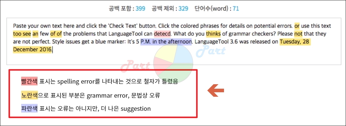 - 빨간색 : 영어 단어의 철자가 틀렸을 때 표시가 됩니다.