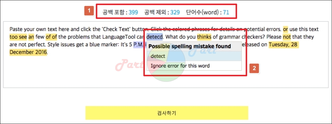 문법이나 철자 같은 것도 틀린 것이 있으면 알려주고, 어떻게 수정하는 것이 좋은지도 알아볼 수 있습니다.