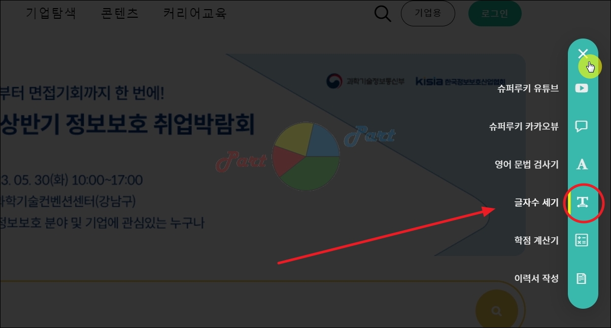 해당 메뉴를 선택하면 여러 가지 사용하기 좋은 도구 및 서비스가 나타나는데요. 네 번째에 위치한 글자수 세기 메뉴를 선택해 주세요.