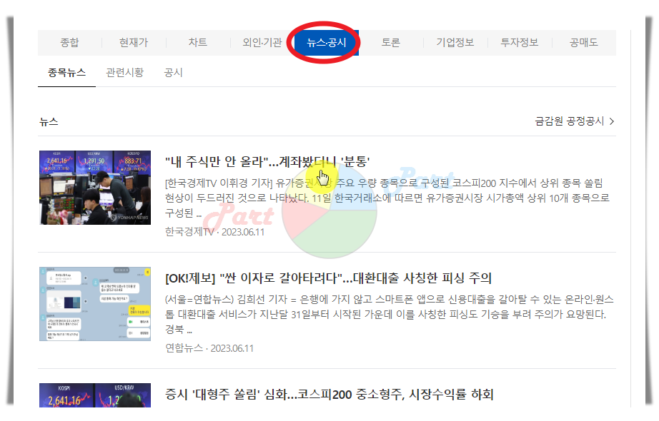7. 선택한 종목에 관련된 뉴스나 공시 정보도 손쉽게 만나볼 수 있습니다.