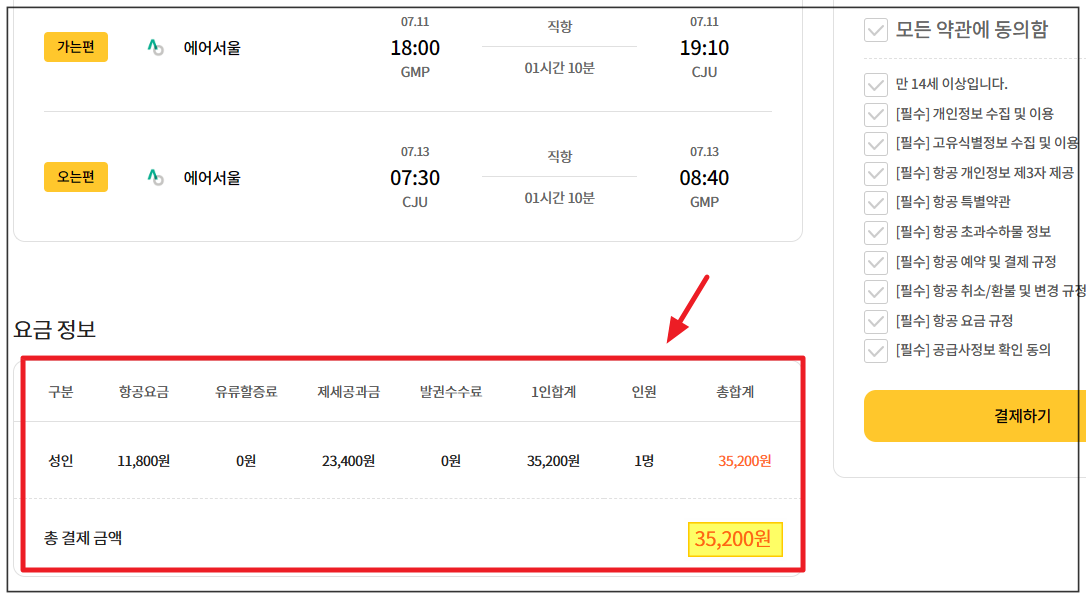1. 방금 글을 쓰기 위해 항공권을 찾아 보았습니다. 서울에서 제주도를 왕복하는 비행기를 이용하는데에 있어서 35,200원 밖에 들지 않네요. 아직 성수기는 아니지만, 여행을 많이 갈 때라고 생각하는데요. 이렇게 싸게 구입하는 것이 가능하다니 저도 놀랐습니다. 참고로 여기에는 유류할증료, 제세공과금, 발권수수료가 포함되어 있습니다.