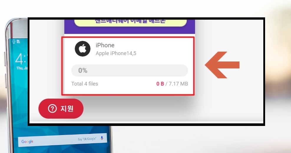 6. 핸드폰에서 컴퓨터로 사진이 전송되는 화면입니다. 용량에 따라 다르지만, 파일 옮기는 속도와 시간은 매우 짧은 편입니다. 저는 7메가 정도의 파일을 전송했는데요. 3초도 걸리지 않았습니다.