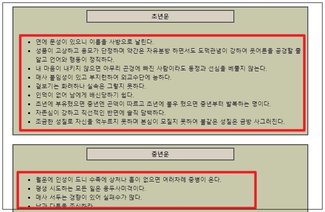 8. 이번에는 초년운, 중년운, 말년운 이러한 나이대에 따른 운을 살펴볼 수 있습니다.