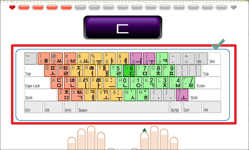 제대로 자판을 익히지 않은 경우 잘못 입력하는 오류를 발생시키는데, 아무리 타이핑 속도가 빨라도 오타가 나타나면 크게 수정하느라 시간을 허비하는 일이 잦습니다. 그렇기 때문에 처음 연습할 때 제대로 익히는 것이 중요한데요.