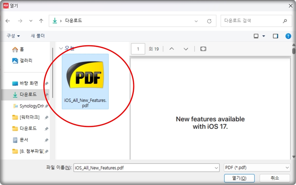 한글 파일로 바꾸고 싶은 PDF 파일을 선택해 주세요. 저는 미리 하나의 문서를 준비해 놓았습니다. 정말 잘 되는지 시험을 해보도록 하죠.
