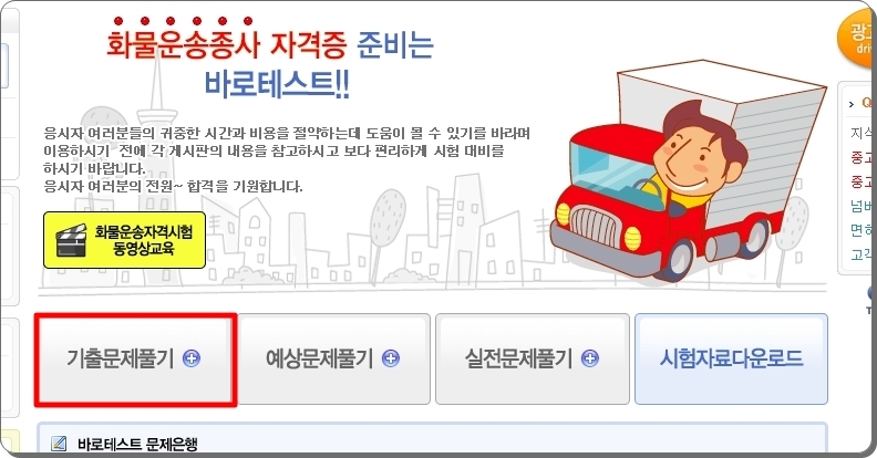 버스운전 자격시험 기출문제를 풀려고 하는데 화물운송 자격시험을 선택해서 의아해 하시는 분들이 계실 텐데요. 일단 새롭게 올린 페이지에서 기출문제 풀기 버튼을 눌러 주세요.