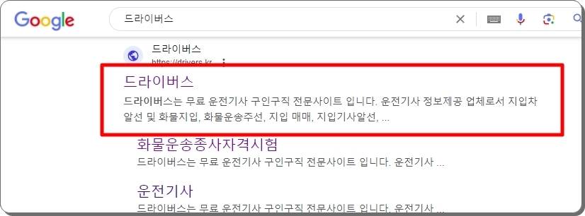 이제 본격적으로 버스운전 자격시험 기출문제 자료를 이용해 보겠습니다. 드라이버스 사이트를 통해 해당 자료에 접근을 하려고 하는데요. 회원가입도 할 필요 없고, 무료로 이용할 수 있습니다.