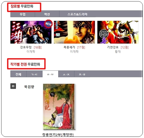 무협 만화를 좋아하는 분이라면 묵검향 작가의 작품에 대한 매력을 아실 거에요. 흥미진진한 스토리와 멋진 그림이 일품인데요. 이번 시간에는 묵검향 작가의 작품을 처음부터 끝까지 무료 감상하는 방법을 알려드릴 겁니다. 2가지 방법을 알려드릴 것이기 때문에 2개의 사이트를 이용할 건데요. 꽤 많아서 다 보려면 며칠은 걸립니다.