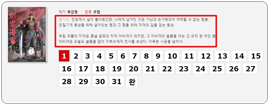 무료 만화 시리즈 중에서 보고 싶은 작품을 찾을 때 줄거리를 참고하면 좋은데요. 줄거리는 감상하는 화면 바로 아래에 위치하고 있습니다.