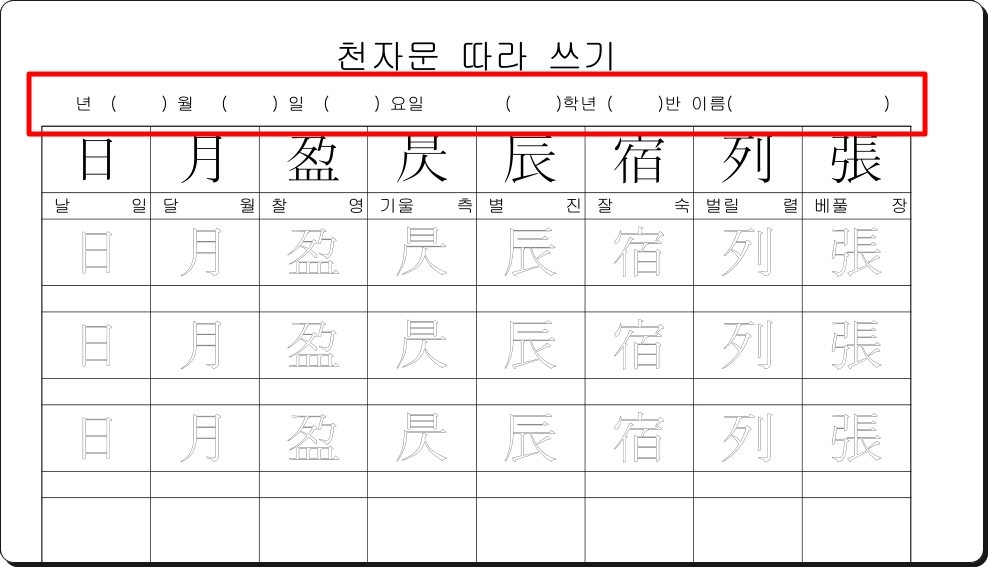 요즘에는 배우고자 하는 것이 있을 때 꼭 비용이 발생하는 것은 아닌 거 같아요. 이번에 공유해 드릴 천자문 쓰기 자료 파일을 이용하면 교재를 따로 살 필요가 없습니다. 프린터에서 읽기 쓰기 연습을 제대로 할 수 있거든요. 여기에 더하여 추가적인 학습 자료를 제공해 드리려고 하는데요. 한문 공부하기에 정말 좋습니다.